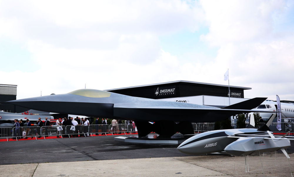 这是2019年6月20日在法国巴黎航展上拍摄的由法国达索飞机制造公司和欧洲飞机制造商空中客车公司联合研制的第六代战斗机全尺寸模型。新华社记者高静摄