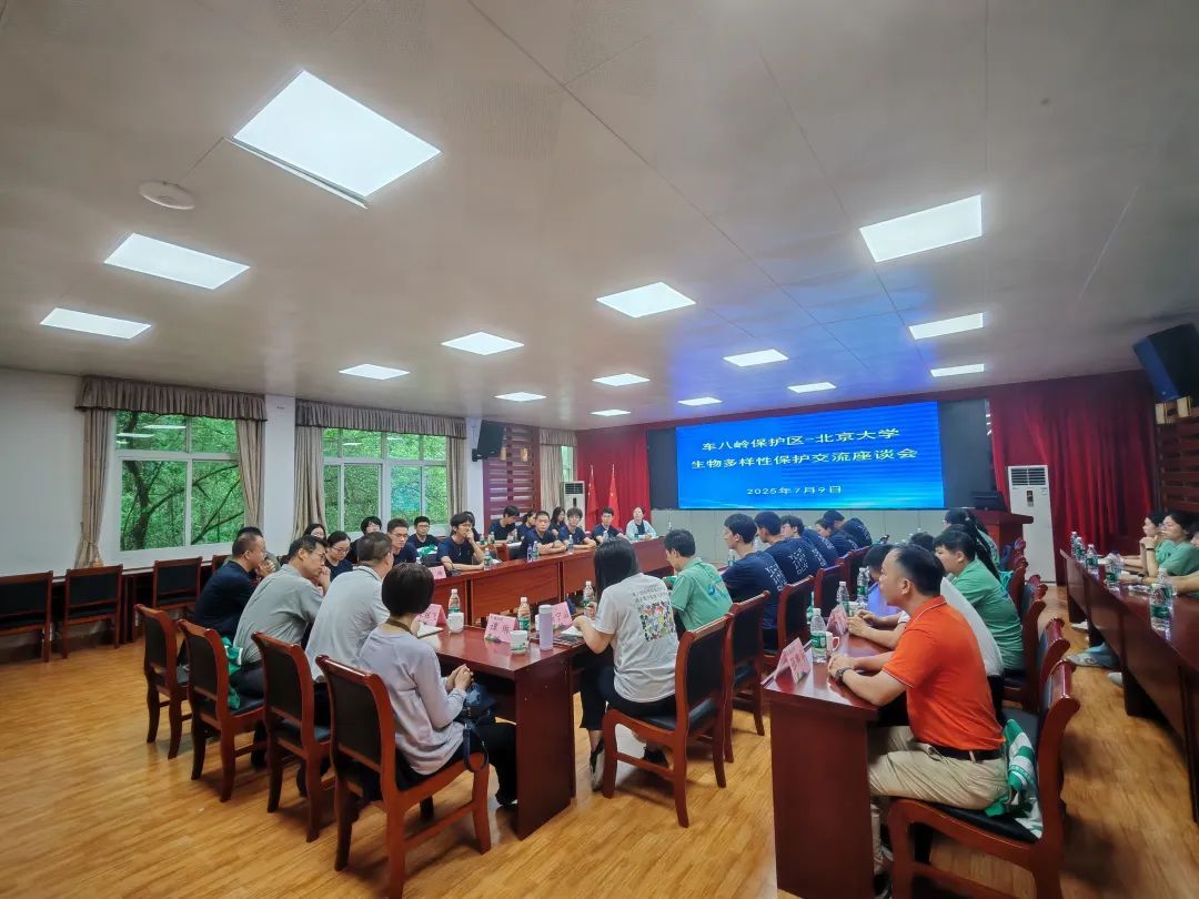 在随后举行的交流座谈会上,与会人员共同观看了车八岭国家级自然保护区专题宣传片,全面领略了其作为“物种宝库”的自然禀赋与保护成效。车八岭保护区管理局负责人详细介绍了车八岭保护区在生态保护、科研监测、自然教育及社区协调发展等方面的情况与挑战。北大师生则分享了此行在思政教育与专业实践融合上的深刻体悟。“在车八岭的青山绿水间,‘绿水青山就是金山银山’的理念变得无比真切,”一位参与实践的学生感慨道,“这堂行走的思政课,让我们深刻理解了青年在美丽中国建设中的责任。”