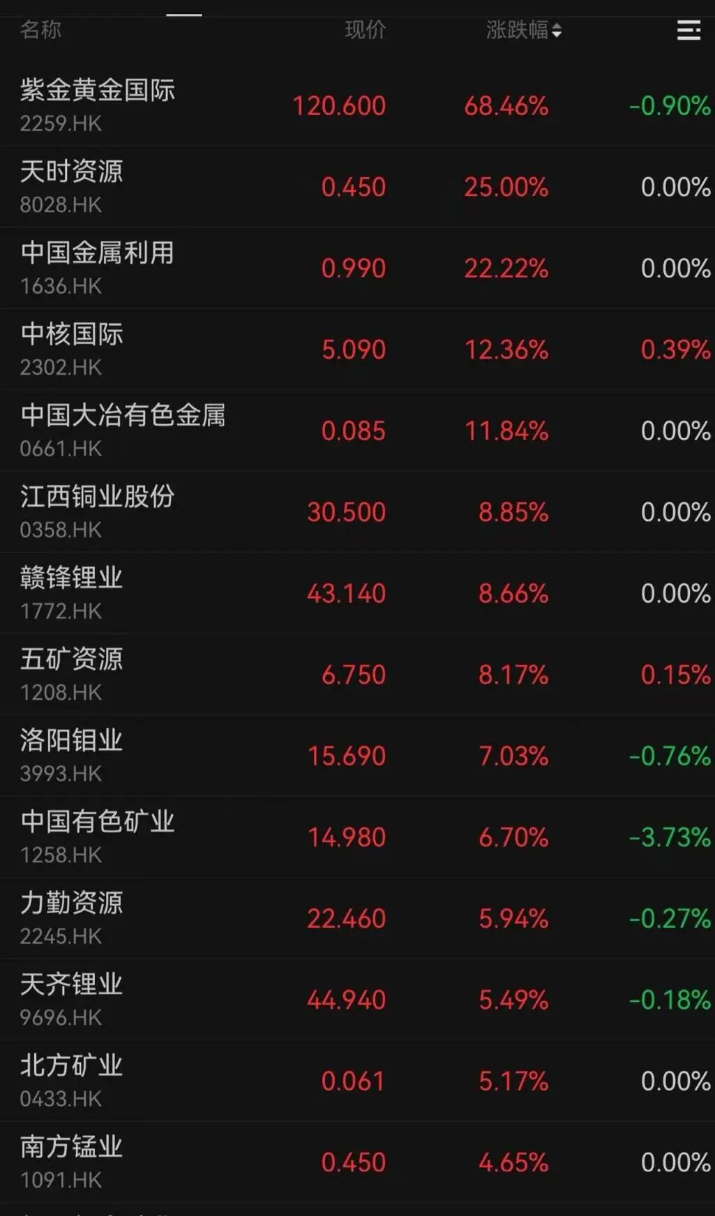 国际金价今日续创新高,港股有色板块爆发。港股年内第二大IPO紫金黄金国际上市首日暴涨近70%。