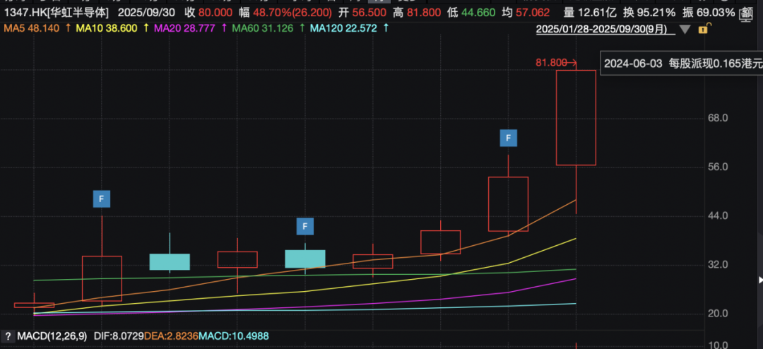半导体板块延续涨势。脑洞科技、晶科电子股份和华虹半导体涨幅超过10%。华虹半导体9月月度涨幅为48.70%。
